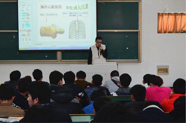 培训中,张信医生采用理论宣讲与实际操作结合的形式,深入浅出地向大学生讲解了救护新概念、心肺复苏、创伤救护、人体模型等急救基础知识,让同学们现场观看学习实用急救技能,不少同学亲身进行胸外按压急救的尝试。(稿件来源:机械工程系)