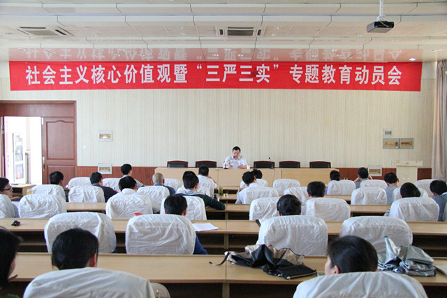 5月21日下午,我院召开社会主义核心价值观暨“三严三实”专题教育动员会。学院两级班子成员、教研室主任、全体专兼职辅导员、全体思政与人文教研室老师、优秀学生干部等参加了会议。学院党委副书记马平作专题教育并对全院开展“三严三实”专题教育作出全面安排部署。