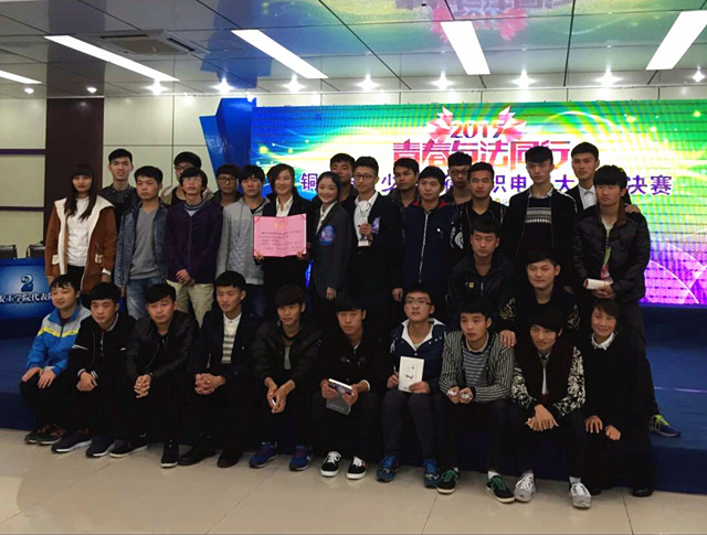 为深入学习贯彻党的十八届四中、五中全会和习近平总书记关于依法治国的重要讲话精神,迎接第二个“国家宪法日”的到来,培育在铜青少年崇尚法治、信仰法律的法治理念和学法尊法守法用法的行为习惯,11月19日上午,“青春与法同行”2015年铜陵市青少年法律知识电视大奖赛总决赛在市公安局举行。共有6支代表队进入了决赛阶段进行最终角逐,分别是:市国税局、市公安局、铜化集团、国网铜陵分公司、皖能发电公司和我院大学生代表队。