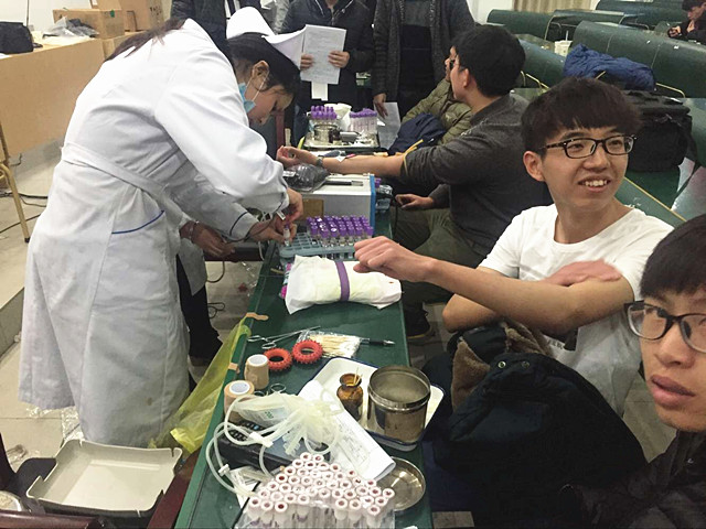 早上七点,学生们不畏严寒,早早地来到了阶梯教室102门口,等待着工作人员的到来。前来献血的学生排起了长龙,一股无偿献血的爱心热潮在学院内澎湃而起。
