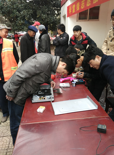 这次家电义务维修活动被社区居民戏称为“及时雨”,因为天气转冷,社区居民多为老年人,他们行动不便,家中出现故障的家电也没办法解决。这次维修活动中,当维修点刚建立起就有许多老年人拿着自家出了问题的水壶、手电筒、收音机、电视机及一些小型家电设备请求帮忙维修。在维修现场,同学们有的忙于记录报修名单,有的则埋于各式小家电的维修处理中。活动开始几个小时后,前来报修的居民仍络绎不绝。