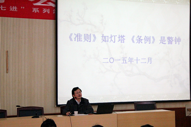 4月7日下午,学院在阶梯教室301举办了学习《中国共产党廉洁自律准则》和《中国共产党纪律处分条例》(以下简称《准则》和《条例》)专题讲座,学院邀请了集团公司纪委副书记刘小平做专题讲座,刘书记为全院党员上了一堂精彩生动的廉政辅导课。学院党委书记石小河主持讲座,学院院长陈世虎、党委副书记马平、副院长周理瑞、全院党员老师参加了学习。