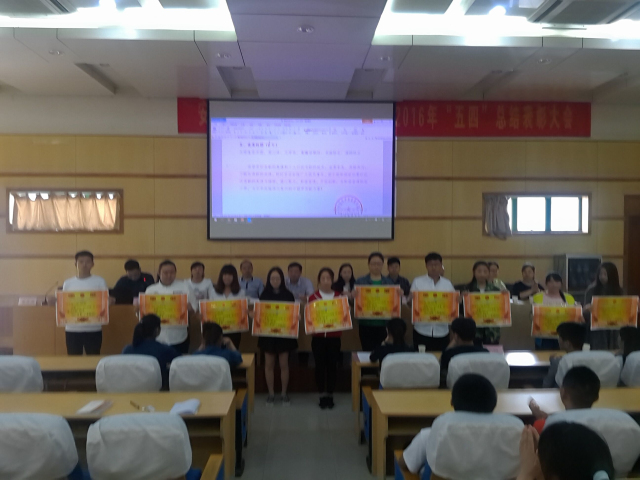 为纪念五四运动97周年暨建团94周年,进一步继承”五四”传统,弘扬“五四”精神,展示一年来学院团学工作所取得的成绩,表彰在团学工作中作出突出贡献的先进集体和个人,并以此进一步推动我院各项工作和建设加快发展,5月4日下午,学院在阶梯302报告厅隆重举行“纪念五四运动97周年暨共青团表彰大会”。学院党委副书记马平、学生处主任、团委书记、各系团总支书记出席大会, 并为受表彰的先进集体和个人代表颁奖。表彰大会由院团委副书记主持。