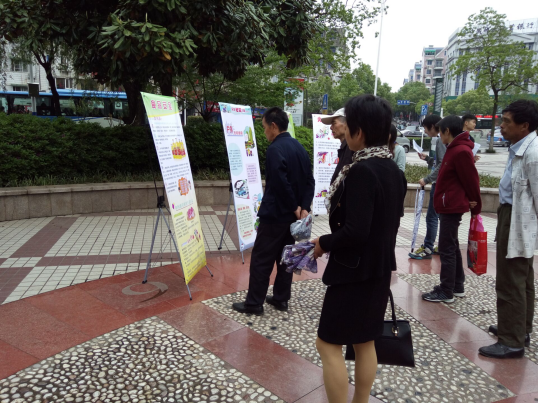 本次宣传主题是与社区居民息息相关的 “地震自救”、“食品安全”、“火灾防范” 、“除四害”等安全问题。宣传形式主要是展板、宣传单,并配以文字讲解。活动现场吸引了众多社区居民驻足观看,他们十分认真,不时提出一些问题,同学们都一一给予解答。也有一些奶奶阿姨们提出自己对社区、家庭安全隐患的看法和解决问题的办法,现场气氛十分活跃。