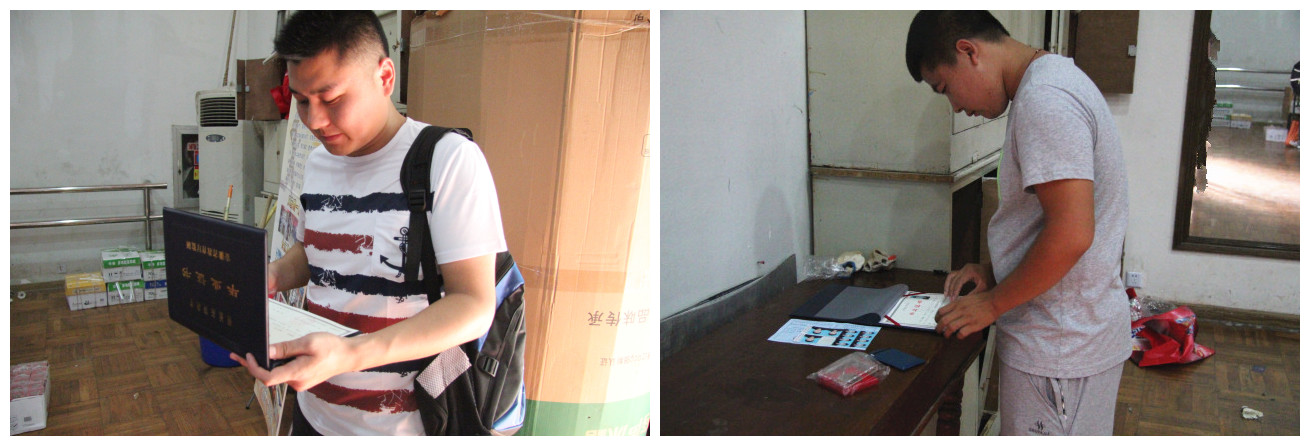拿到毕业证露出开心笑容的学生(左) 学生小心整理刚刚拿到的毕业证(右)