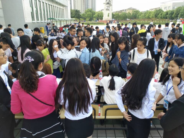 活动现场气氛热烈,约有一千多名同学在现场报名参加了各种专业社团。