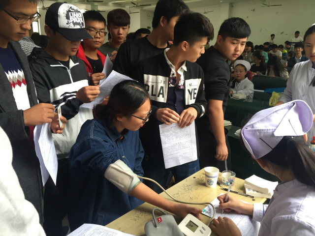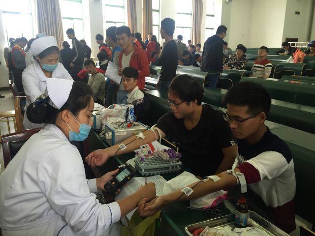 在长长的献血队伍里,今年女生参与人数比往年增多,很多女学生在献血过程中全程不敢看,但任然坚持到了最后。事后她们告诉身边的志愿者说:“从小便怕打针。但知道很多病人都需要更多血液去延续他们的生命,所以希望能尽自己所能为他们做些事。”机械系2015级一名男生已经是第四次参与无偿献血,他表示,义务献血是非常有意义的事,他会一直坚持下去。(稿件来源:学生处)