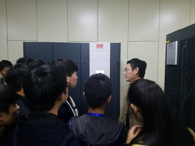 为增加信息工程系相关专业同学接触和了解行业一线的机会,增强同学们的学习兴趣和直观认识,近日,信息工程系组织16级部分同学和赛博网络社团社员共100多位同学一起参观了铜冠信息公司的ERP数据中心。