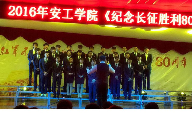 为纪念红军长征胜利80周年,传承艰苦奋斗的长征精神,10月28日下午,安徽工业职业技术学院举行“红军不怕远征难”纪念红军长征胜利80周年大学生歌咏比赛。同学们演唱了众多抗战名曲,一曲曲慷慨激昂的红歌名曲,使得合唱现场气氛十分热烈,再现了红军不怕远征难,万水千山只等闲的磅礴气势。