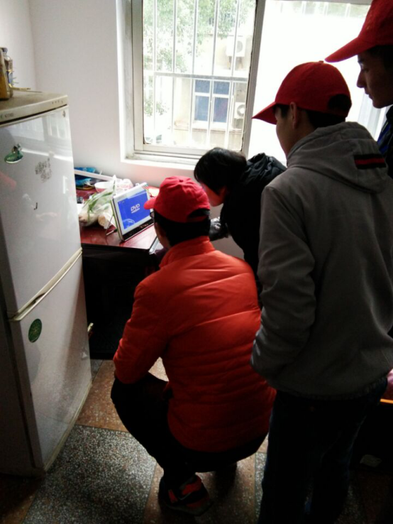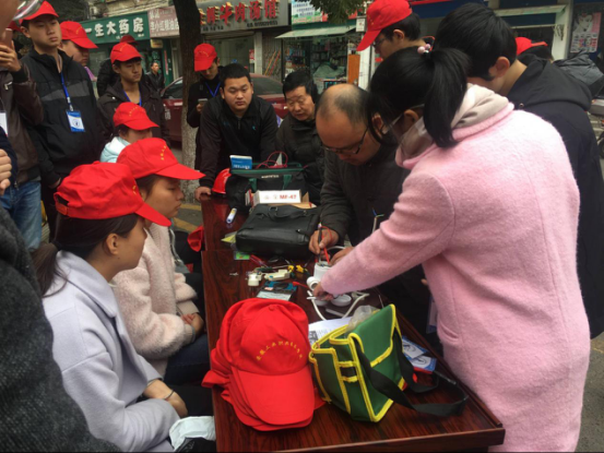 活动伊始,在布置维修场地时,就已经吸引来了不少社区居民的围观。活动开始后,同学们将社区居民们拿来的故障家用电器进行了一一登记。在维修过程中,同学们各自分配好任务,要个按照工作流程,针对每件需要维修的家电仔细询问、记录故障现象、分析解决方法、进行维修调试。换零件、接断线、整理线路、修理电板……大家忙得不亦乐乎。期间,有一位年过八旬的老奶奶向社员们反应她家中线路故障问题,了解情况后同学们前往老奶奶家上门为她维修线路。