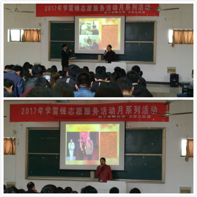 为了使学生认识到好人就在身边,身边不缺好人,学院团委于3月5日邀请了两位铜陵好人——顺安派出所民警何德操和乡村医生俞茂亚来学院同160余名学生分享他们的故事。2010年的冬天,何德操发现有人落水,不顾个人安危,先后三次潜入冰冷刺骨的水中救人,事后打捞落水车辆也参与其中,他用实际行动展现了人民警察崇高的精神境界。俞茂亚则为了乡村的卫生事业,放弃了舒适的城市工作,他始终将农民的健康放在第一位,选择了长达八年的走诊生活。他扎根在边远洲区,穿梭在农家田头,救死扶伤、排忧解难,服务群众,用乡亲们的话来说,他就是一颗“定心丸”。两位好人的事迹让在场的同学们都肃然起敬,掌声久久不能散去,他们纷纷表示,要向铜陵好人看齐,争做安工好人,将雷锋精神传递下去。