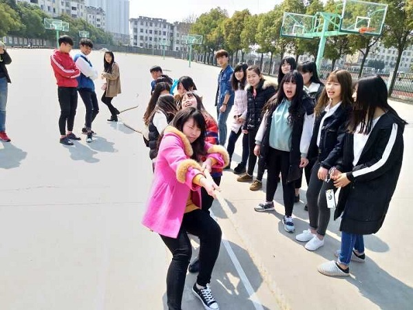 3月7日中午,院学生会体育部在篮球场举办了一场特别的活动——“非常6+1 无忧女生节”拔河比赛。每只参赛队都由六名女生加一名男生组成,据了解,全院绝大多数的女生都参加了这项活动中。他们团结协作,在竞争中体味着合作的快乐。