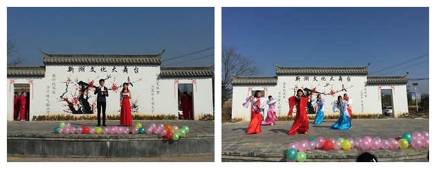 表演在新湖村紫金花广场舞队带来的舞蹈《红》中拉开帷幕。学院太阳帆文学社的《礼仪之邦》以舞蹈形式将中国传统文化展现给村民;歌曲联唱和街舞展示出了我院大学生的青春风采;二胡独奏《卷珠帘》唯美动人;小品《修理工》和相声《莽撞人》更是把村民们逗得合不拢嘴,掌声连连。最后,此次表演在观众们的叫好声中圆满结束。