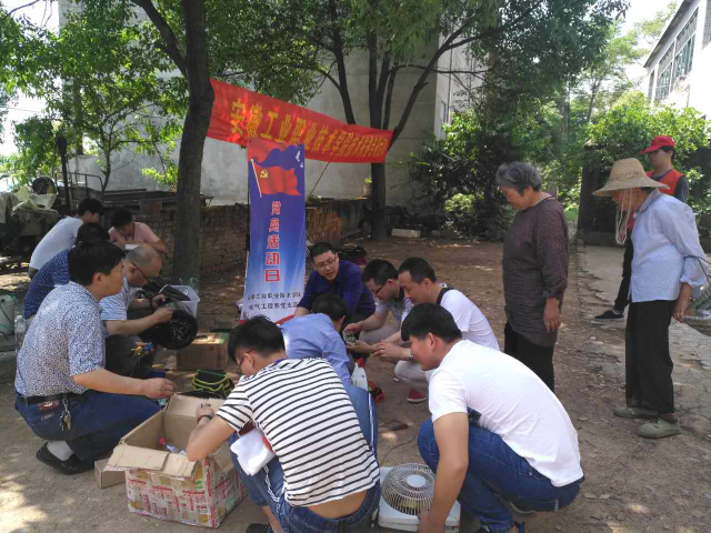 学院电气系党支部和社团开展了“便民服务 义务维修”活动。活动中,电气系教师和学生们顶着烈日,利用自带配件箱搭成简易的修理台,开展维修活动。“这个风扇我们用了20多年,一直也舍不得买新的,旧的估计连镇上的人都不愿意修了,你们看看还能修好吗?”一位老奶奶拿着一台样式极其古老的风扇来到维修点。“奶奶,我们会尽力去修的,您放心吧!”社团指导老师和社团志愿者们认真检查风扇后,熟练地进行万用表测量,并为电扇换上新的电容器,立即电扇吹出了清凉的风。在90多岁摔伤卧病在床的孤寡老人家里,志愿者们为老人在床边安上了电灯开关,将线路进行了从新布置,将老式的保险更换成空气开关,消除了安全隐患,老人激动的连连竖起大拇指。一位排队等待维修电饭煲的老奶奶说:“这么热的天,你们不喝村民一口水,为我们免费维修电气,不怕辛苦,真是了不起。”这温馨的话语让老师们和志愿者们干劲更加足了。据统计,此次家电维修共修理电器20台,电气系老师和社团志愿者们的辛勤工作受到了当地村民的一致好评。(稿件来源:办公室)