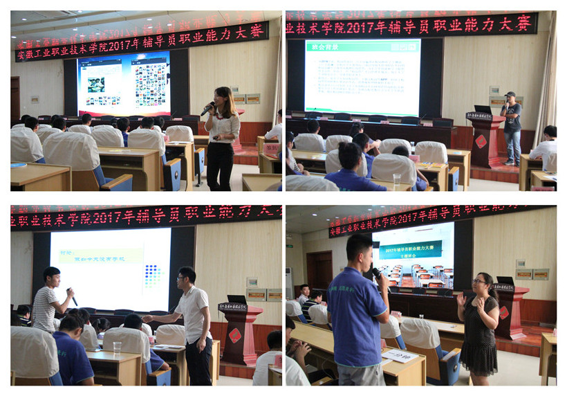 本次大赛共设置了“主题班会、主题演讲、谈心谈话、案例分析”四轮现场赛。“主题班会”限时10分钟,参赛辅导员各展所长,积极与现场组建的临时班集体学生互动,充分展示了通过综合运用思想政治教育、社会学、心理学、管理学、教育学等相关学科知识和方法开展大学生思想政治教育的能力;“主题演讲”限时5分钟,主要考察辅导员语言表达能力和逻辑思维水平,各参赛选手根据指定主题真情讲述了辅导员的工作、生活与梦想;“谈心谈话”情景再现了各辅导员日常工作中与学生的谈话技巧及沟通能力,通过从大学生常见的典型事例,与现场学生助演积极交流,体现以学生为本、关注学生成长的人文情怀;“案例分析”主要选用了贴近学生生活,契合当前热点,涉及学生人际交往、就业创业、党员发展、学风建设等学生工作中紧密相关的实际问题,通过详细地分析和阐释,充分体现了妥善处理学生工作实际问题的技巧与方法。