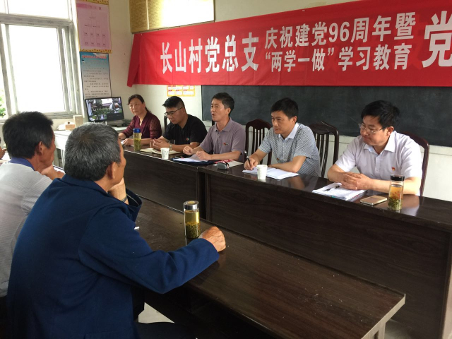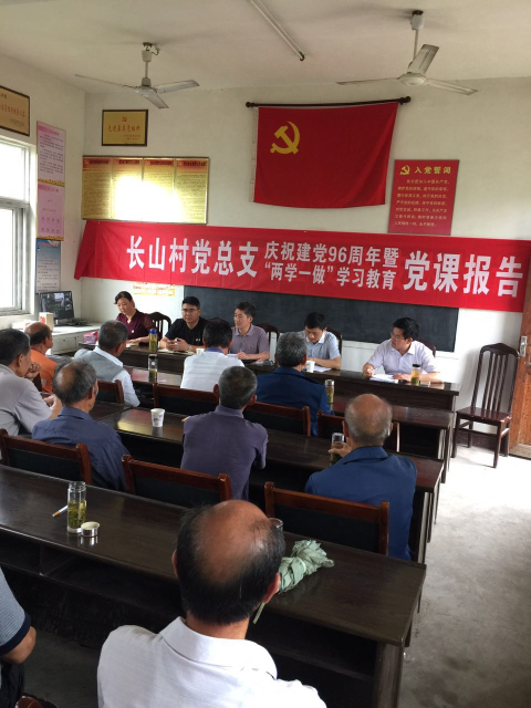 7月1日下午,安工学院·枞阳县规划局·钱铺乡长山村联合党委在钱铺乡长山村开展庆祝建党96周年暨“两学一做”学习教育报告会。学院党委委员、纪委书记、工会主席周理瑞同志为联合党委成员、村两委班子、长山村全体党员上了一堂精彩的党课报告会。