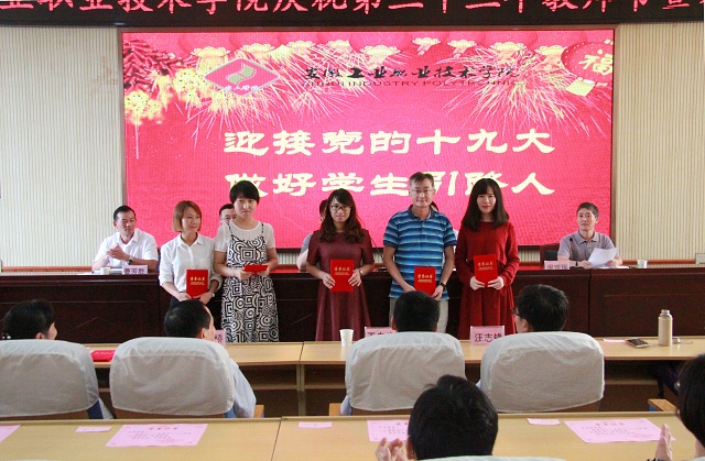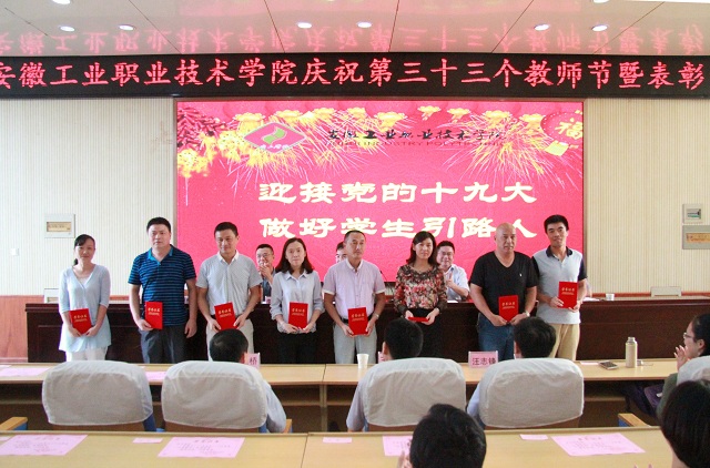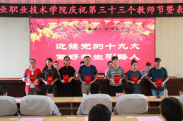随后,学院副院长曹芳胜宣读受表彰人员名单。会上,分别授予46位老师“教书育人特别奖”、“优秀教师”、“优秀工作者”、“优秀辅导员”、“优秀管理工作者”荣誉称号,并为在安徽省教师个人竞赛中获一二三等奖的教师进行了现场颁奖。