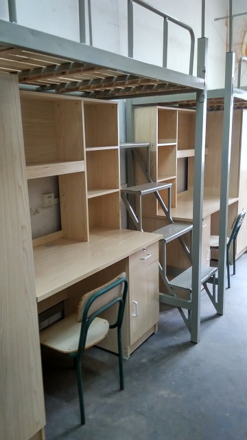 此次宿舍更新工作,由总务处基建办负责施工管理,并得到了宿管办的大力协作。先后经过拆除旧家具,清理宿舍,到每间宿舍的线路改造工作以及最后的组装公寓床及组合家具,整个工作耗时一个多月。