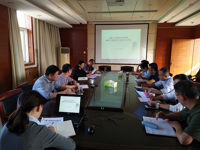 10月9日下午,学院2017年国家奖学金评审工作会议在第一行政楼四楼会议室召开。由学院常务副院长李庆峰,纪检书记、工会主席周理瑞,学生处、教务处主要负责人,各系部分管学生工作书记等人组成我院国家奖学金评审领导小组。会议由学生处傅主任主持。
