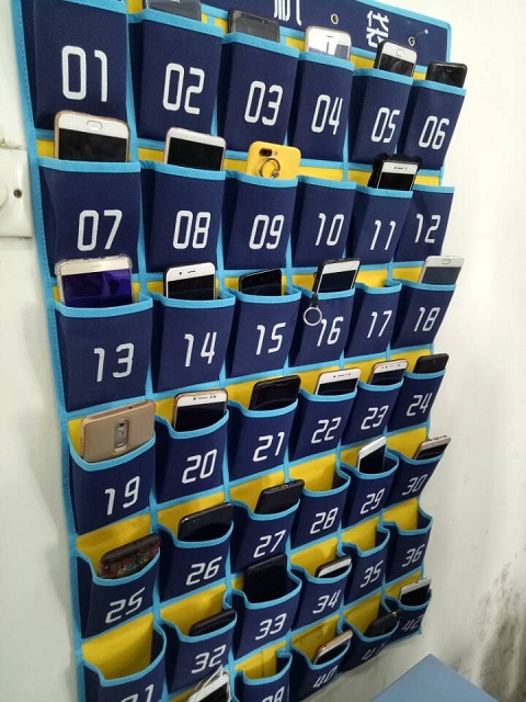 目前,学院为2017级所有班级都配备了手机收纳袋,学生和老师上课前主动将手机静音或关机,并放入收纳袋指定的位置,下课的时候再取走。