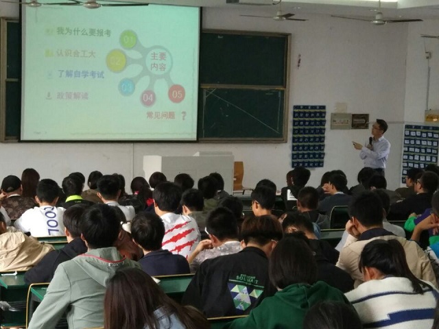 10月27日下午,一场精彩的专题讲座"本科学历的快速通道 就业升职的金色钥匙"在我院阶梯101教室举行。这次讲座由合肥工业大学继续教育学院蒋明权教授主讲,两百多名学生到场聆听学习。