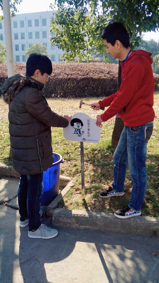 “校园文明,你我先行”活动由信息工程系学生会、大学生艺术设计社团和樱火动漫社联合主办,当日在女生宿舍楼和男生宿舍楼下,用多种生动活泼的形式宣传绿色环保意识。