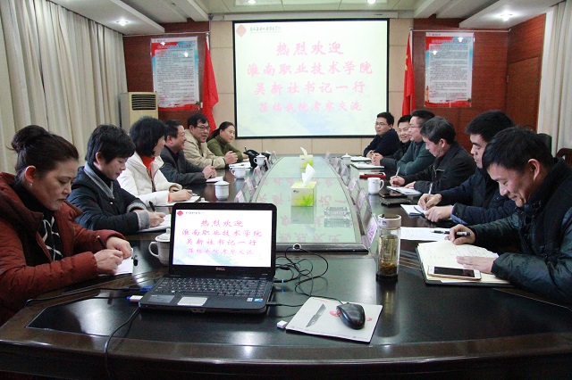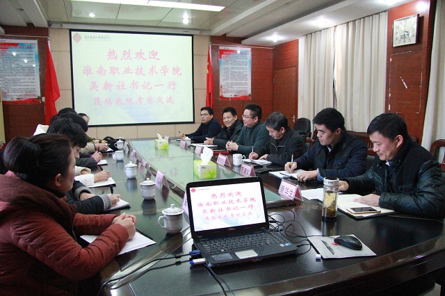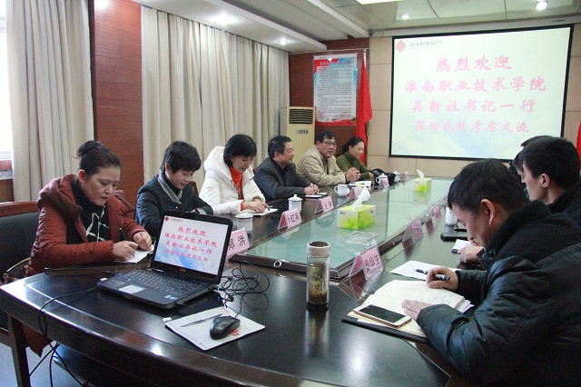 近日,淮南职业技术学院党委书记吴新社、院长助理张涛一行6人,来我院就党建工作、干部人事管理、人力资源管理、薪酬与津贴等方面进行考察交流。