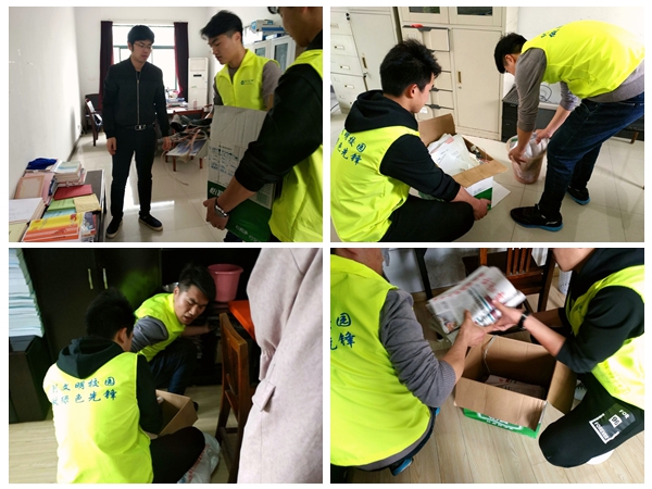 在今年的学雷锋志愿服务行动月里,有一抹清新的绿色身影穿梭在校园中,格外引人注意。他们是校园文明劝导活动之“绿色先锋”环保岗的成员。 这支由大学生社团联合会和碧森环保协会共同组建的“绿色先锋”环保小分队是今年在学院团委倡议下,自发组建起来的一支以服务节约型校园创建,加强校内环保宣传教育工作的学生文明劝导队伍。每月最后一周周五上午,该分队将走进校内各办公楼对教师办公室各类废旧物品进行回收;每周五中午在各公寓楼下设设立“废旧物品回收点”,鼓励大学生们以寝室为单位将矿泉水瓶、废旧书本、快递包装盒等废旧物品送到回收点。 3月30 日上午,“绿色先锋”环保小分队走进学院各办公楼开展了第一次回收活动。活动受到了学院领导和老师们的一致好评。不少老师表示:“办公室日积月累的杂物很多,以前都要打电话喊回收物品的人上门来收,现在方便多了,对学生来说也是很好的锻炼。” 据悉,该院“校园文明劝导”活动自2014年开展以来,从最初的“校园文明劝导岗”、“就餐文明劝导岗”、“学生党员示范文明岗”、“周末夜间安全劝导岗”到今年新增的“绿色先锋环保岗”,既展示了学院精神文明创建的进步,也旨在通过多元的途径进一步推动大学生文明养成教育,促进每位学生成为文明的宣导者和践行者。(稿件来源:院团委)