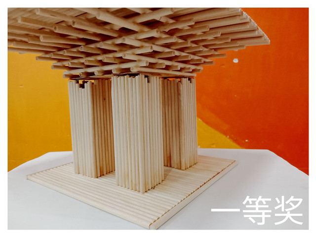 一等奖:用一次性筷子做的上海世博会的中国馆,一个不符合常理的顶部设计阐释出力学的美。