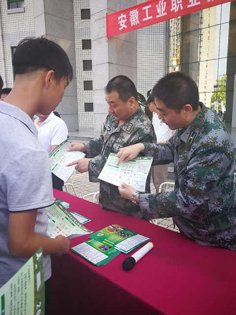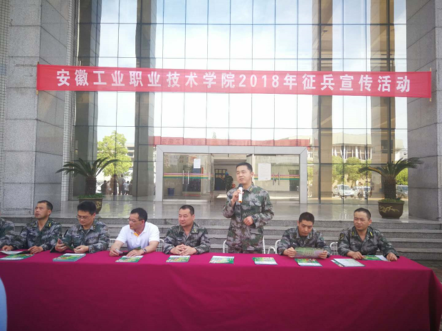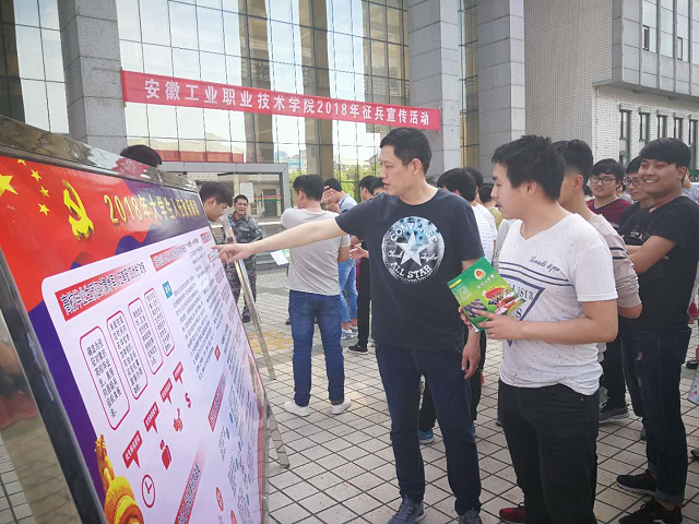为激发广大适龄青年大学生参军报国的热情,积极响应祖国号召,携笔从戎,报效国家,4月20日下午,我院在教学楼广场开展征兵政策宣传进校园活动。本次活动由市军分区铜官山区武装部与我院共同举办。