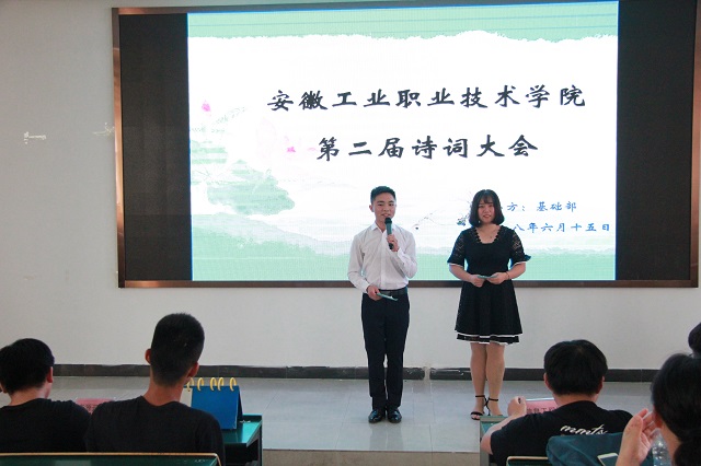 为深入贯彻落实党中央关于培育和践行社会主义核心价值观的意见要求,弘扬中华民族优秀传统文化,加深同学们对中华诗词文化的深入了解,6月15日,由基础部主办、海子经典诗文诵读社团协办的我院第二届“古韵流芳•诗传承”诗词大会在阶梯101教室举行。