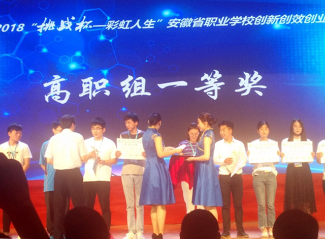 图7:参加2018年“挑战杯——彩虹人生”安徽省职业学校创新创效创业大赛成果丰硕