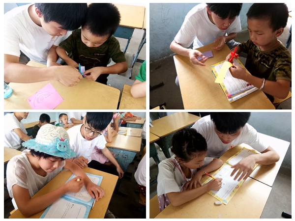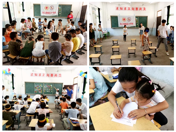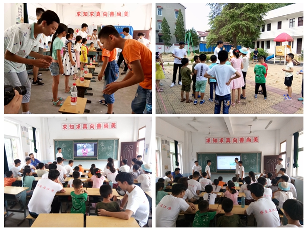 12日上午,社会实践团来到枞阳县长山小学,在这里开展了为期2天的“共享阳光·快乐成长”关爱留守儿童公益行动。活动由队员们与孩子们的自我介绍开始,在“摸瞎子”“比谁反应快”“你比我猜”等一个个有趣的破冰游戏中,孩子们逐渐与队员们融入到一起。通过开展安全防护教育讲座并配合孩子们喜闻乐见的情景剧形式对他们进行防溺水、防火、防拐骗、防触电以及养成良好卫生习惯等方面的安全防护教育,提高孩子们的安全防范意识。通过学业辅导和爱心陪伴,让孩子们在快乐中学习,逐渐丰富自身知识。