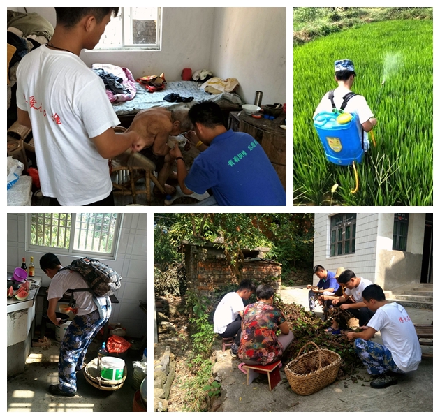 本次社会实践中,实践团队在负责人的带领下,深入长山村走访贫困农户,与困难群众进行了一次零距离的面对面接触,他们走在田间地头,与正在劳作的村民交谈、宣传最新的扶贫政策和党的十九大关于脱贫攻坚的最新部署、调研改革开放40年来身边的变化。在农户家中队员们详细记录了村民的日常生活和贫困户的真实诉求。此外,队员们结合实际情况开展了相关公益服务,为90余岁孤寡残疾老人喂饭、协助农户打农药、处理农活、帮助空巢老人担水、生火做饭等。耐心的询问,悉心的聆听,认真的记录,真情的服务,为贫困家户带去了最贴心的呵护,受访者积极的配合也给予了实践团队员精神的鼓舞。