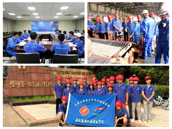 下午,实践团队来到金隆铜业有限公司,在中心会议室观看了金隆铜业有限公司司情宣传片,公司团委陈书记向大家介绍了40年来,改革开放政策给企业带来的变化。随后,在车间负责人的带领下,队员们参观了金隆公司电解铜车间。