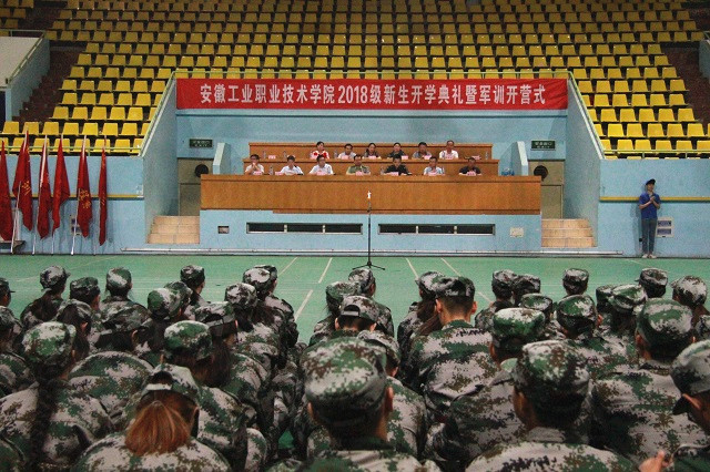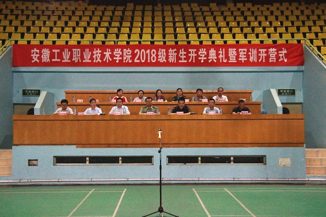 9月15日上午,我院2018级新生开学典礼暨军训开营式在学院体育馆举行。铜陵军分区副司令员朱国荣、学院院长陈世虎,党委书记石小河,常务副院长李庆峰,纪检书记、工会主席周理瑞,副院长曹芳胜,院长助理、信息工程系、机械工程系、电气工程系、资源开发系、管理工程系、基础部、教务处、学生处、团委、武保部部门主要负责人出席典礼并于主席台就坐。我院2018级全体新生参加了典礼。典礼由纪检书记、工会主席周理瑞主持。