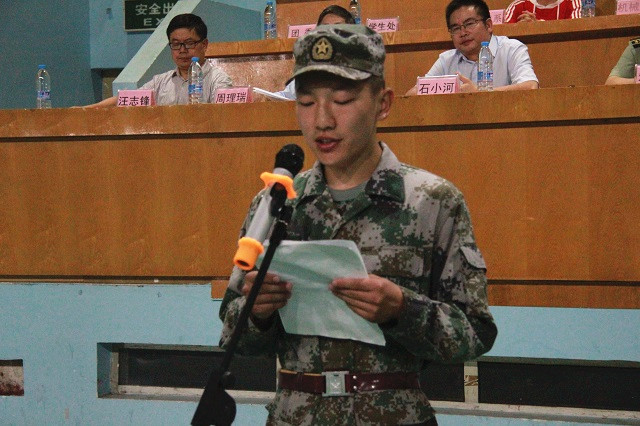 军训教官代表、18级新生代表分别代表军训教官和2018级新生发言。随后全院新生进行了集体宣誓。