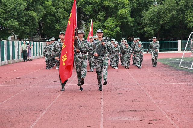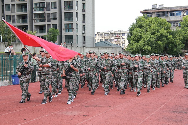 闭营仪式在庄严的国歌中正式开始。伴随着雄壮的解放军进行曲,全体新生进行分列式汇报表演。全提2018级新生根据专业分为多个阅兵方阵,以威武的军姿、整齐的方阵、迈着矫健的步伐,整齐地通过主席台接受检阅。