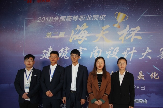 本次比赛由中国建筑装饰协会设计委员会学术指导,北京中装营造文化传播有限公司、北京海天恒基装饰股份有限公司联合主办,济宁职业技术学院、湖北海天时代科技发展有限公司联合承办。来自全国30多所高职院校百余名学生进行同场竞技。经过两天紧张的比赛,我院资源开发系海天1702班陶伟获得本次大赛一等奖;海天1701班周玉、范书浩分别获得本次大赛二等奖;指导老师王晓丹获得本次大赛优秀指导老师奖。(稿件来源:资源开发系)