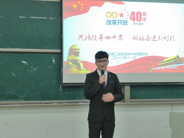 为热烈庆祝改革开放40周年,引导广大学生铭记改革开放的时代意义,培养学生爱国荣校的意识,学院团委于11月29日在阶梯102教室举办庆祝改革开放四十周年演讲比赛决赛。