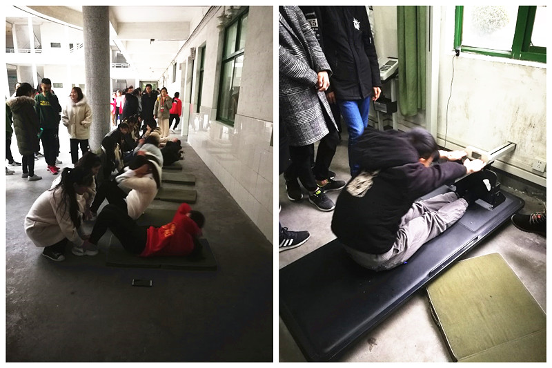 下午2:30,专家组成员按照省教育厅抽取的学生名单,对我校信息工程系2017级、2018级共140名学生进行了身高、体重、肺活量、50米、立定跳远、坐位体前屈、一分钟仰卧起坐、引体向上、800米、1000米10个项目的现场测试。