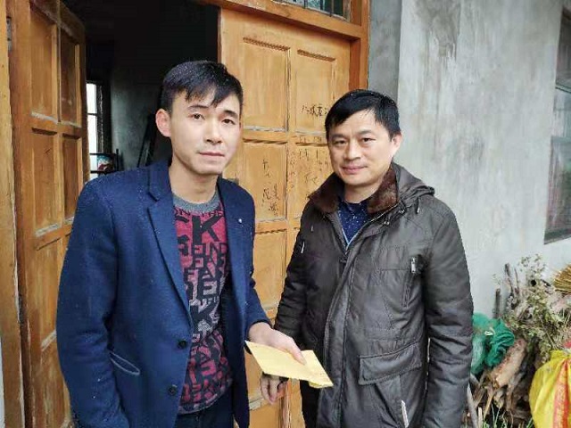 在走访过程中,学院办公室负责人向贫困户送去了慰问金。(稿件来源:办公室)