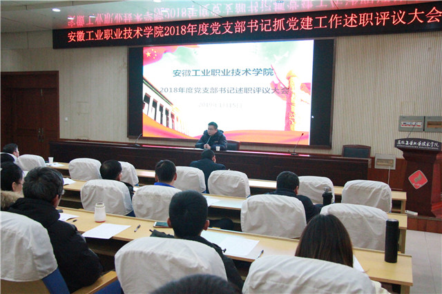 为深入贯彻落实习近平新时代中国特色社会主义思想,按照新时代党的建设的总要求,推动全面从严治党向基层延伸,学院党委于1月15日在教学楼阶梯301教室召开了学院2018年度党支部书记抓党建工作述职评议考核大会。学院领导、两级班子全体成员和部分教职工党员代表参加了会议。会议由党委书记石小河主持。