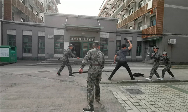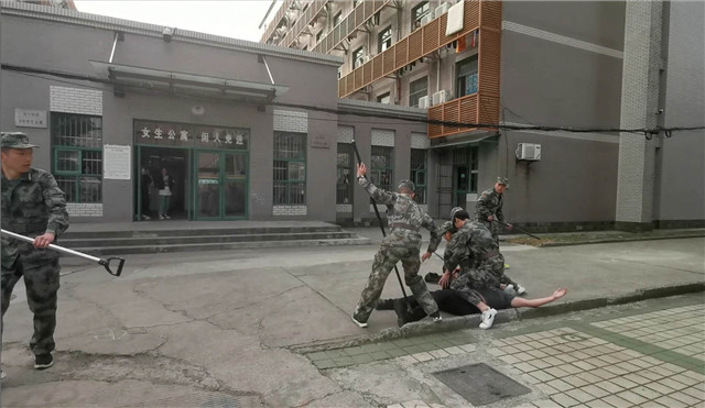 演练以一名感情受困的男生,欲闯入女生公寓伤害女生为设定场景,演练前长江路派出所民警对器械使用方法及反恐防爆最小作战单元战术进行了详细地讲解,并实地演示。随后民警带领保卫部巡逻队人员、亮剑大学生军事社团按照既定程序开展反恐防爆处突演练。