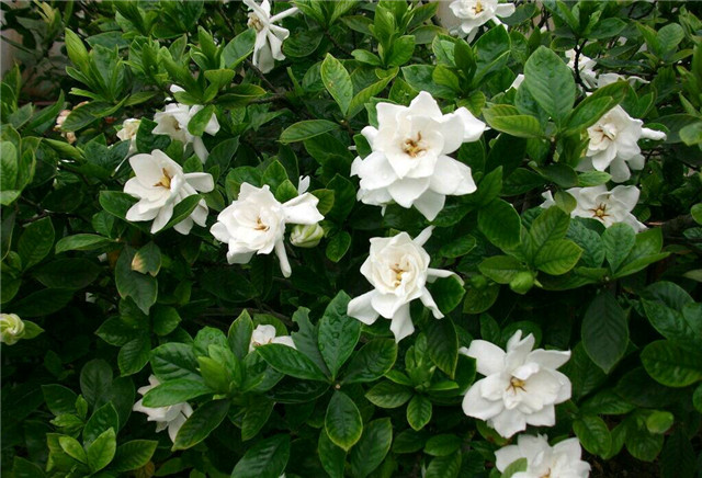 纬二路、纬三路边大丛的花香浓郁的栀子花。
