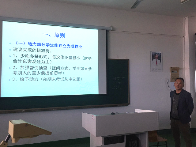 近日,管理工程系在会计手工实训室开展了教师“课程作业的选择、布置与批改”经验交流会。会上汤大益、刘汉周、朱新维老师分别就自己所授课程的作业选择方式和批改情况与参会的老师进行了交流。通过分析和讨论,进一步明确了更适合当前学生特点的作业选择、布置和批改方法,因材施教,提高学生的学习效率。