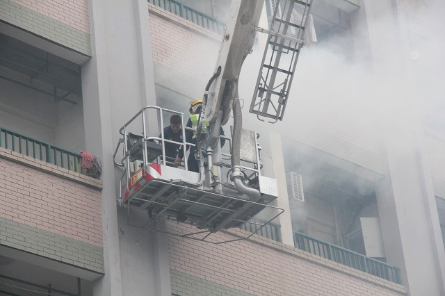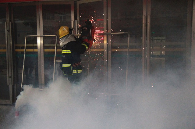 演练从15:00正式开始,燃放烟雾弹、拉响火情警报、学院武保部指挥员发布疏散通知、引导员引导楼内人员疏散,5分钟内楼内人员全部疏散完毕。同时,铜官区消防大队实地演练了火场救援和灭火。全部演练共持续40分钟,完成方案预设的全部演练项目。演练由学院武保部主任金相平、副主任钱林担任总指挥,学院师生员工约400余人参加。