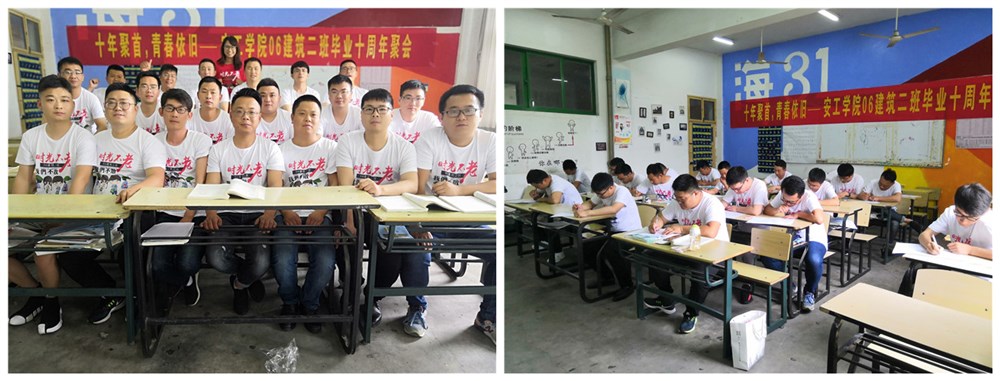 今天我们又回来了,回到了我们熟悉的校园,走进曾经的教室,曾经同窗共读的同学们又聚到了一起,毕业后无比怀念的上学时的情景又真真切切的再现在眼前,辅导员精心准备了惊喜礼物:一堂课和一场考试,试卷里,睡在我下铺的兄弟(姐妹)是谁?印象最深刻的课程是哪一门……PPT中一幅幅老照片、试卷上一道道题目勾起了我们的记忆,瞬间历历在目。来到曾经的吃的非常厌烦的食堂,熟悉的味道让我们食欲倍增。来到曾经的篮球场,让我们再来比试一场,传球、跑位、投球……虽然十年后的我们大部分已经跳不起来了,但是兄弟间的默契依在。