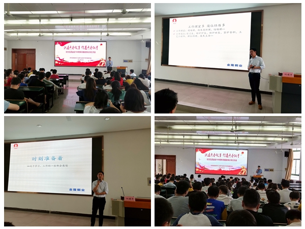 分享会以“讲述青春故事 传递青春能量”为主题,会上何建平课长从自身经历出发,从求学、求职、就业多方面以十余年人生跨度详细讲述了个人的成长经历和经验、分享了自己在成长道路上的坎坷和喜悦,引导同学们要珍惜当下,勇于突破自我,并结合具体事例建议同学们要珍惜学习机会,在学习之余尽可能到企业生产一线去参观、实习,开阔视野。