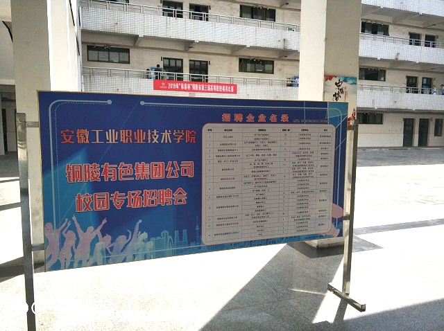 近日,我院在教学楼举办铜陵有色集团公司安工职院校园专场招聘会,金隆铜业、金冠铜业、冬瓜山铜矿等十三家企业招聘260个岗位。